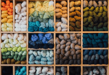 Selecting materials is an art form — organic cotton, recycled wool, all sustainably sourced.